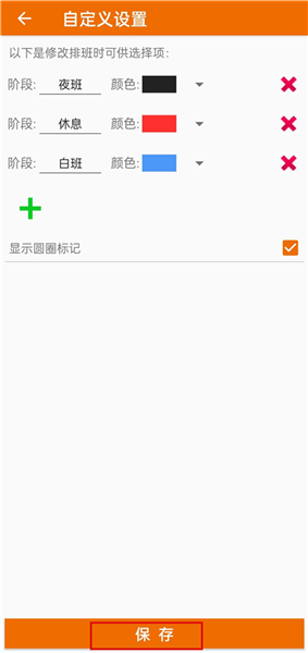2、自定义班次:允许用户根据实际需求创建专属班次类型,如早班、晚班、夜班或调休,并为每种班次指定显示颜色,增强辨识度。