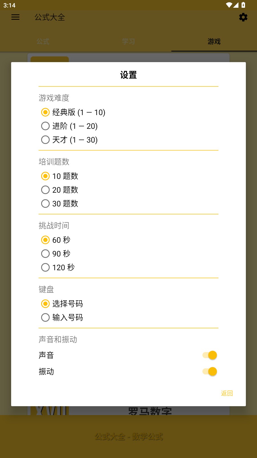 4、游戏模块中点击右上角齿轮设置难度,含培训、挑战、无尽三种模式,锻炼公式计算能力。