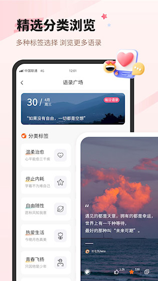 3、心情表达时刻:当用户想表达喜悦、忧伤或思考时,可从中挑选契合心境的文字。