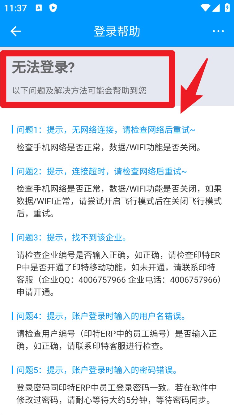 2. 若出现登录问题,可点击登录不了?,根据提示检查网络状态或账号信息。