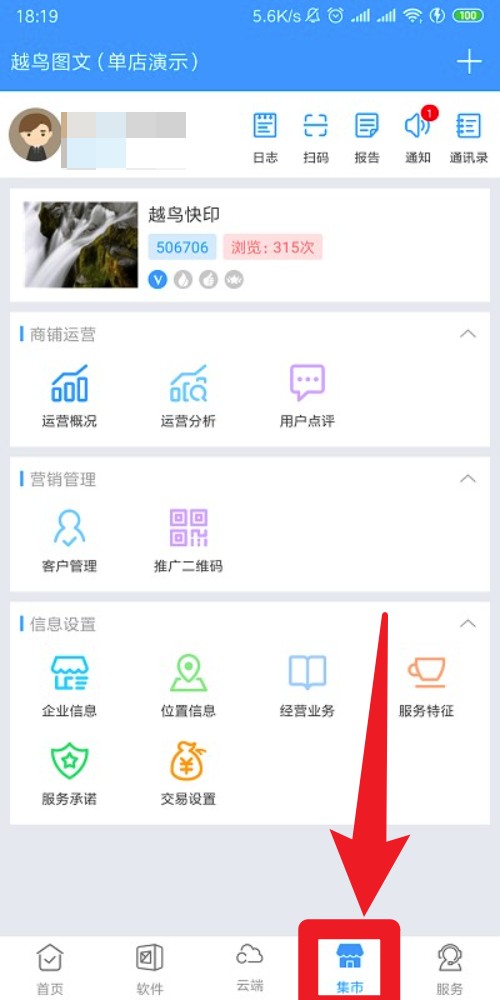 5. 进入集市模块可配置企业信息、位置坐标、服务特色等门店基础资料内容。