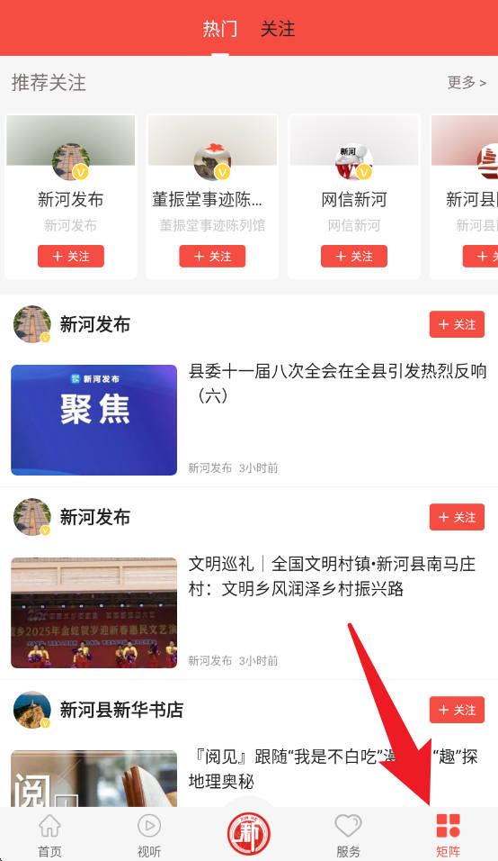 5、在矩阵页面,您能追踪推荐的官方账号与热点内容,轻松订阅关注,获取与政务服务密切相关的信息。