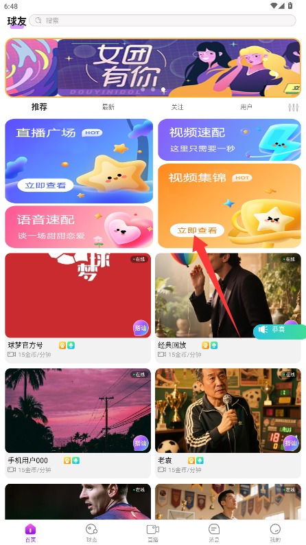 3、进入应用首页,点击导航栏中的视频集锦功能入口,即可浏览各类体育赛事精彩视频。
