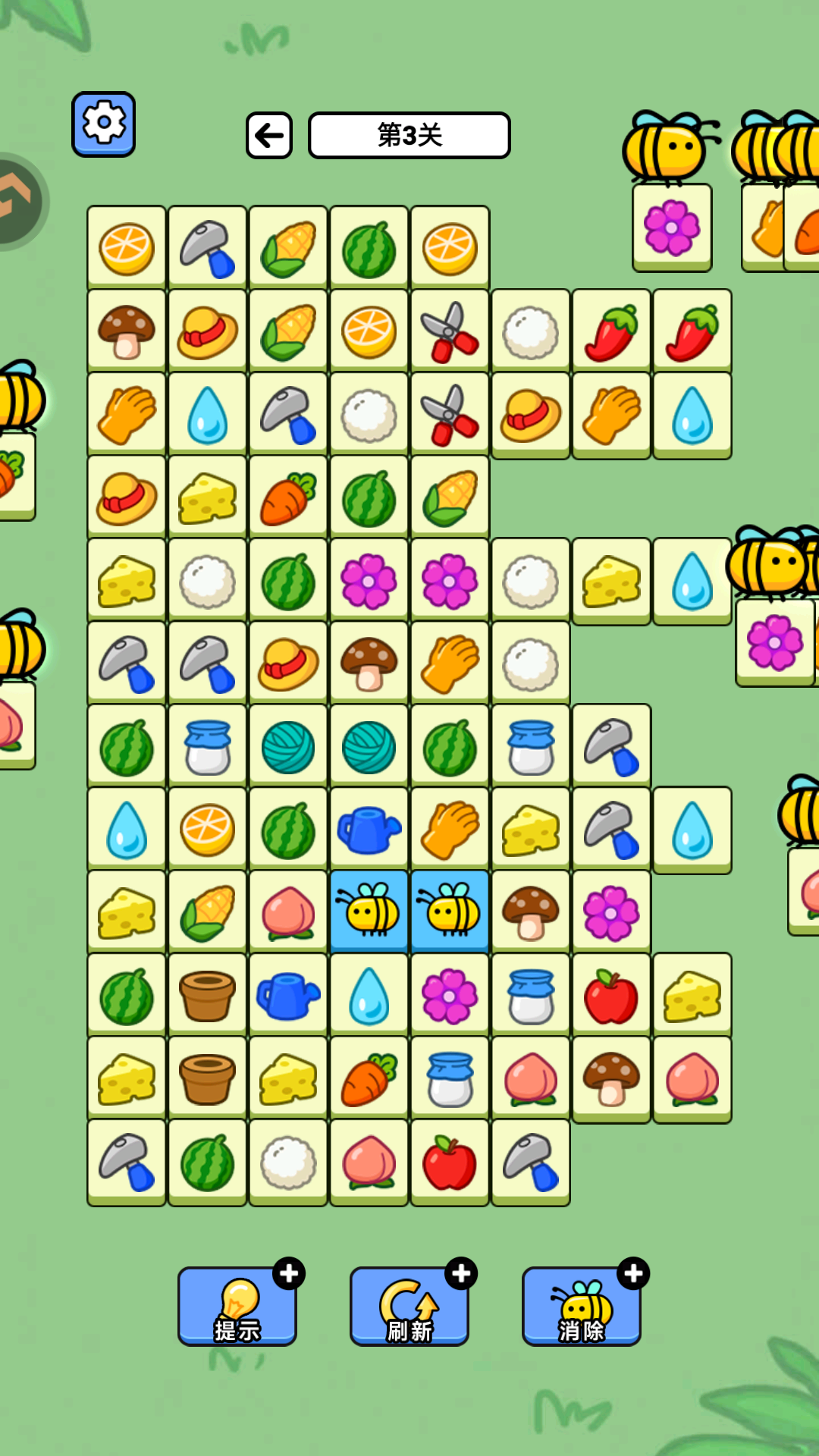 4、辅助道具系统:内置提示、刷新、蜜蜂等实用道具,降低卡关挫败感,增强通关成就感。
