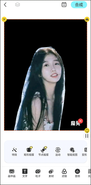6、支持免费抠图功能,完成所有编辑后点击右上角“合成”,作品将保存至相册;
