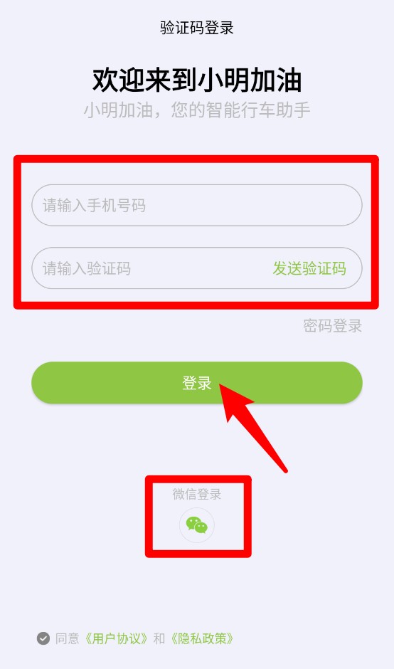 1、登录页面支持手机验证码登录与微信快捷登录,操作便捷快速,适合驾驶途中随时进入使用。