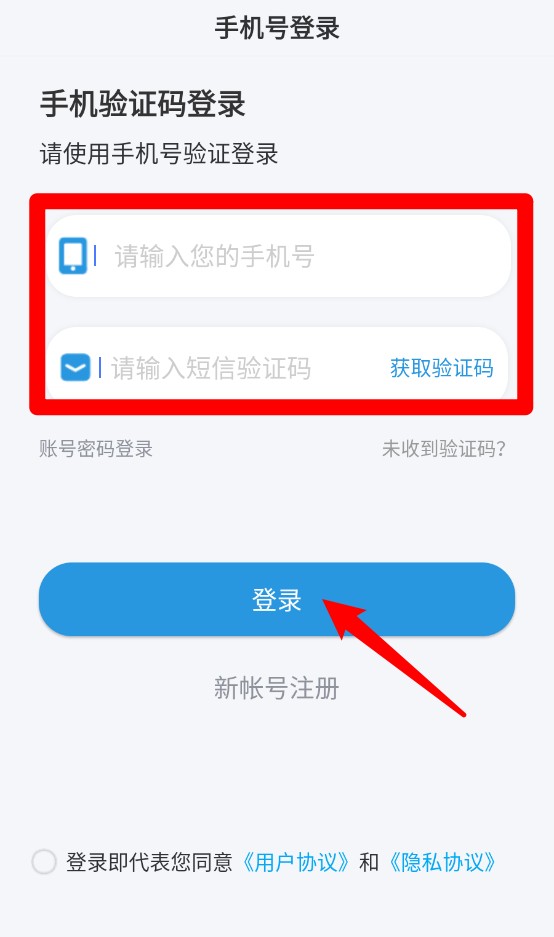 2、手机号验证码登录支持免密码一键登录,只需输入手机号并填写收到的验证码即可完成验证。