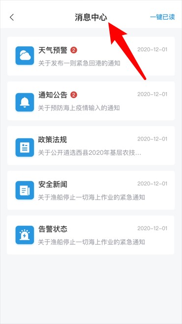 5、消息中心集中推送天气预警、公告通知和政策法规等信息,帮助用户及时掌握海上动态。