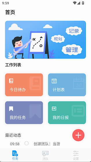 3、之后就能在“任务”界面使用今日待办、计划表等功能了