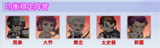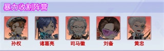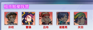 阵容介绍:曹操清增极杀,全体伤害,清理增幅,削弱敌方;吕布攻防兼备,全体伤害,自我增益,稳扎稳打;孙权强力输出,极强增攻,免疫晕眩,无懈可击;关羽极致眩晕,群体输出,极致眩晕,控制战局;诸葛亮攻防暴加,超强辅助,攻防双加,提升团队整体实力。