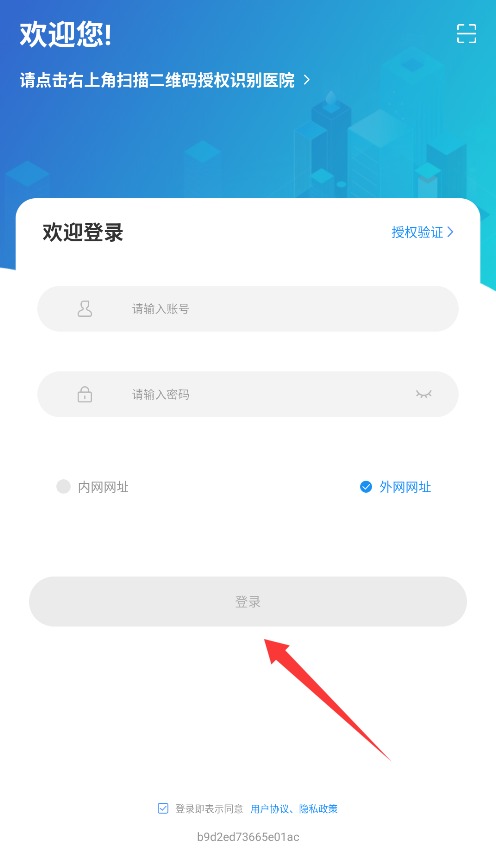 3、输入账号和密码,勾选内网或外网访问方式,点击登录按钮完成身份验证。