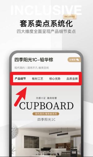 3、点击任意产品套系,即可浏览其详细卖点内容,包括材质工艺、品牌优势与产品细节介绍。