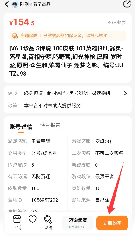 2、从筛选出的成品号或租用账号中挑选合适的,点击进入查看账号详情和租赁规则。