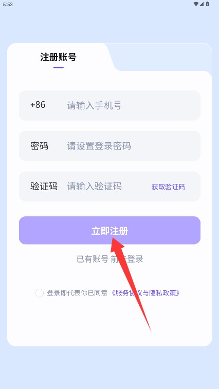 1、进入注册页面,输入手机号获取验证码,设置安全密码并同意协议完成注册。