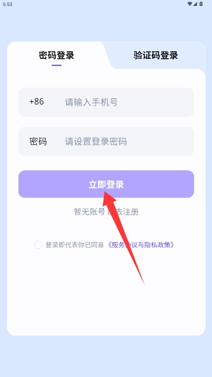2、使用注册账号登录系统,输入手机号和密码,勾选用户协议后点击登录进入。