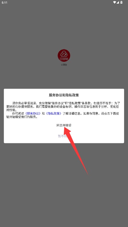 1、初次使用需阅读用户服务协议与隐私政策,确认后点击同意并接受选项进入。