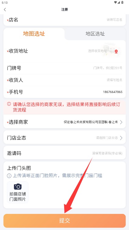 4、完善店铺名称、收货地址、联系方式等必要信息,确认无误后提交注册申请。