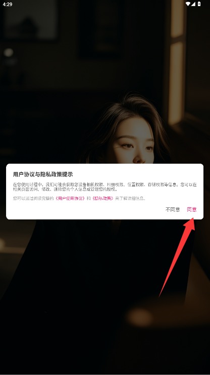 1、首次启动应用需仔细阅读并同意用户协议条款,点击同意按钮进入注册页面。