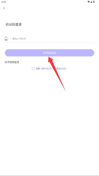 2、在登录界面填写手机号码获取验证码,勾选同意选项后完成账号注册流程。