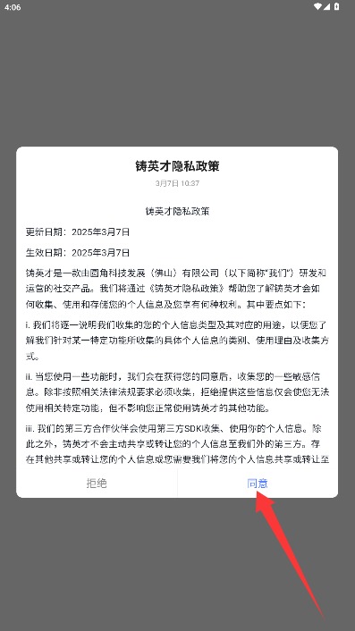 1、初次使用需阅读用户服务协议与隐私政策,确认后点击同意选项进入应用。