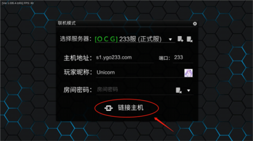 2、然后选择服务器、主机地址和玩家昵称之后,点击【衔接主机】。