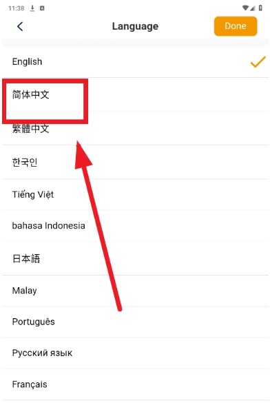 2、点击右上角图标,选择“简体中文”选项,将语言设置为中文;