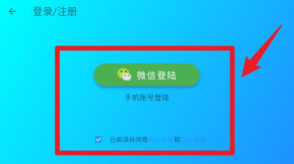 1、在登录界面中可选择微信一键登录,也可通过手机号注册登录,使用前须勾选同意用户协议与隐私政策。