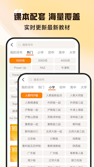 3、全阶段词库覆盖:涵盖小学至考研、四六级、雅思托福等主流教材与考试词汇,满足长期学习规划。