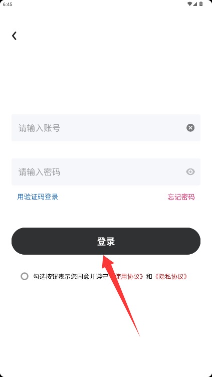 2、在登录页面输入手机号和登录密码,勾选同意相关条款后点击登录进入应用。