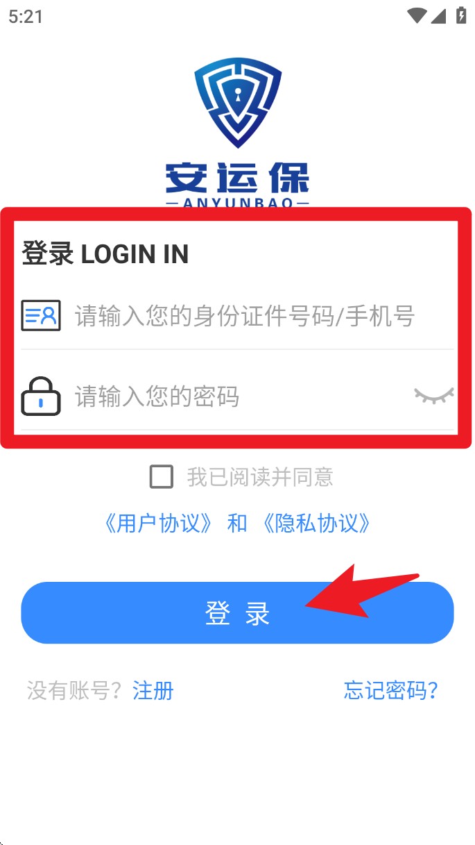 1. 在登录页输入身份证号或手机号及密码,勾选协议后点击登录按钮,即可进入系统首页。