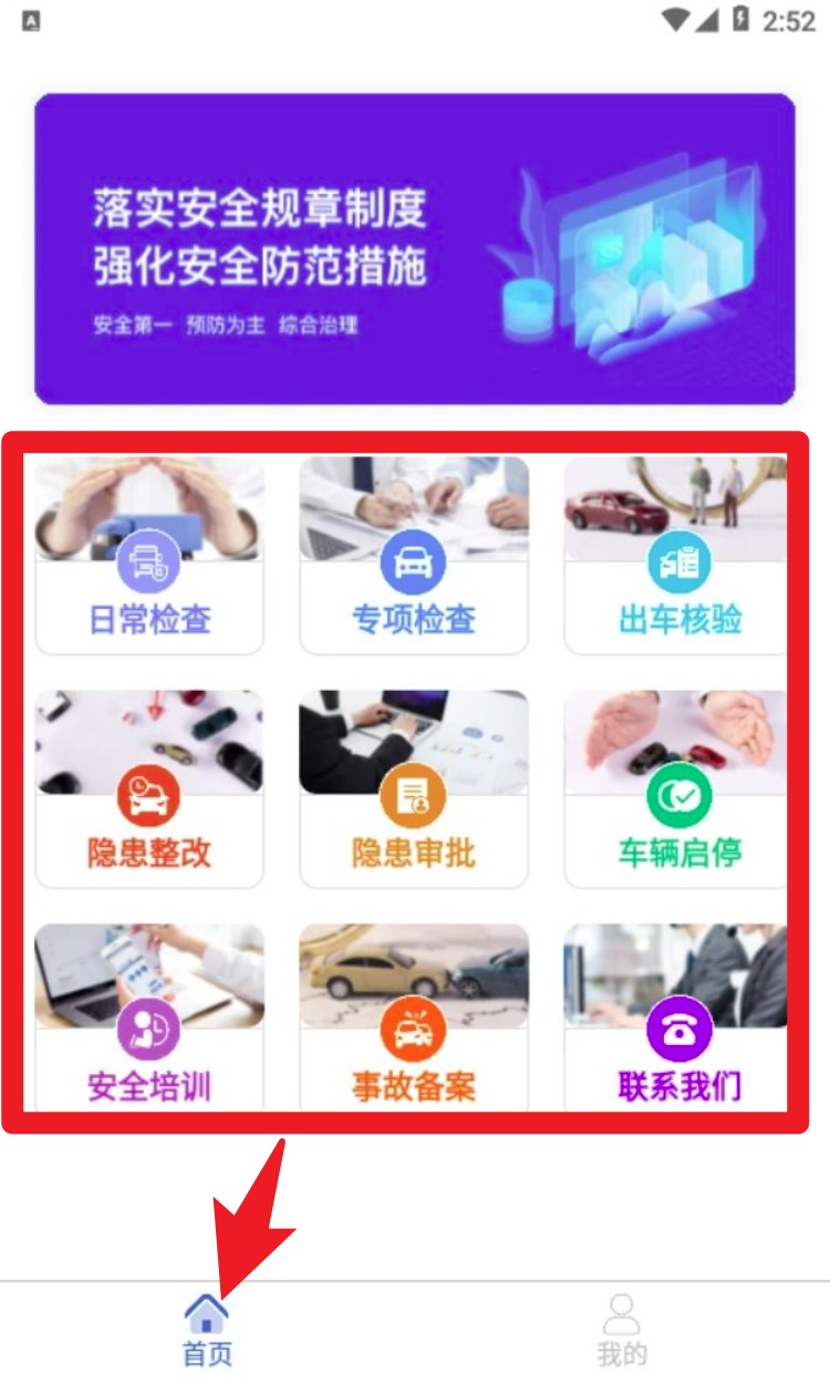 3. 登录成功后进入首页,可看到日常检查、专项检查、出车核验等多个功能入口,点击任一开始使用。