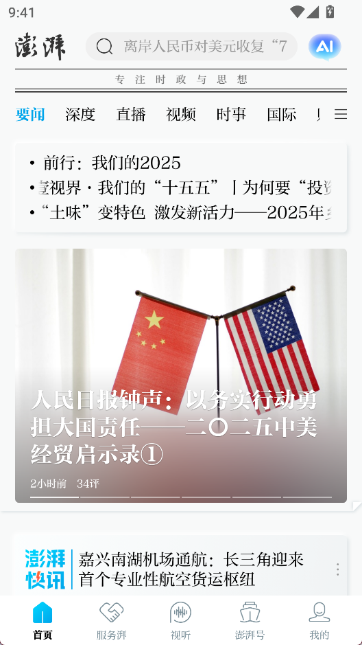 澎湃新闻是一款专注于时政与思想内容的新闻资讯应用,提供全面、深入与高质量的新闻报道,涵盖国内外重要新闻事件,在追踪和分析上表现突出,设有视频直播、问答社区等多元板块,形成集阅读、讨论、参与一体的新闻生态。