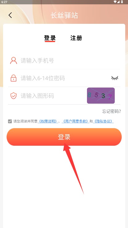 2、使用注册信息登录系统时,输入账号密码及图形码,确认协议后登录进入平台。