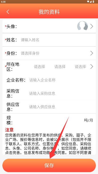 3、完善个人资料包括头像、身份信息等内容,填写完成后保存更新个人档案数据。