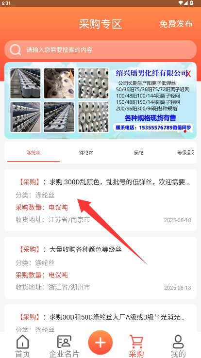 4、进入采购专区浏览供应信息列表,点击感兴趣的内容查看详细采购需求详情。