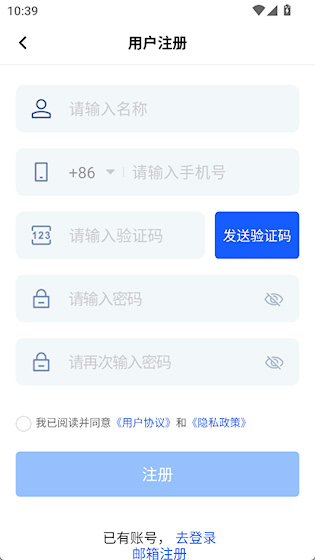 3、可以使用手机号注册,点击底部使用邮箱注册