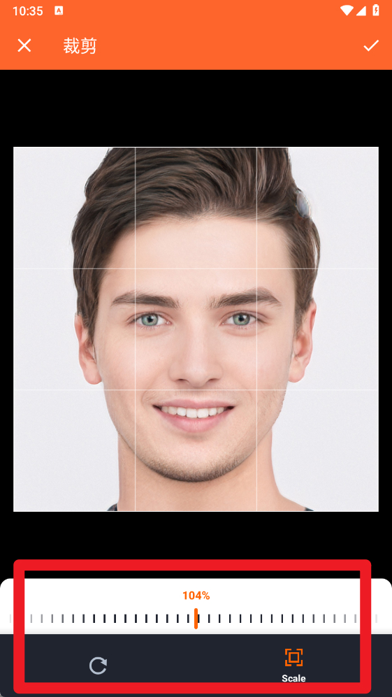2、进入裁剪界面,拖动底部滑块即可调整头像大小比例,确保人物居中清晰。
