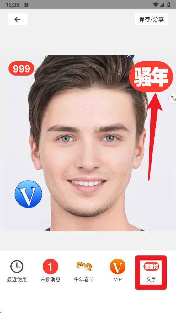 6、点击文字功能,用户可在头像上自由添加文字内容,打造个性化的专属标签。