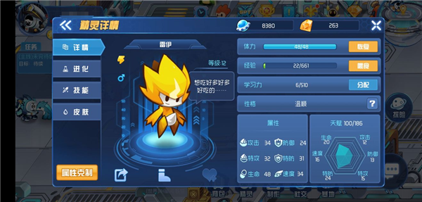 3、角色强度:和初始的御三家精灵比起来好的不是一点点,即使在巅峰赛上也是可以出场的,不过最好可以搭配水兔子一起使用。