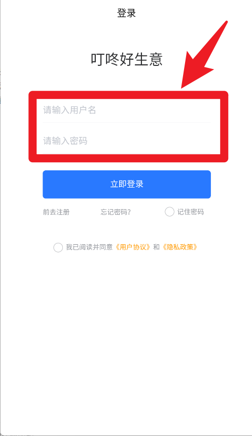 1、在登录界面,用户需先输入注册时的用户名和密码,确保信息填写准确无误后点击立即登录,即可快速进入系统开始使用平台功能。