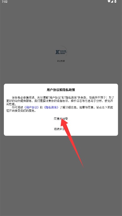 1、初次使用需阅读平台服务条款与隐私政策,确认后点击同意并接受选项进入。