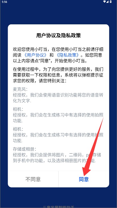 1、初次使用需阅读平台服务条款与隐私政策,确认后点击同意选项进入登录界面。