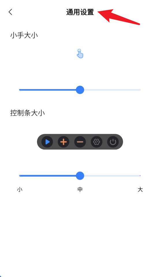 4、通用设置界面可调整小手与控制条大小,自定义显示比例,适应不同屏幕操作习惯。