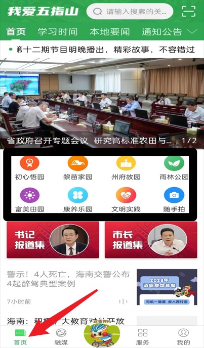 1、首页整合政务信息、专题报道与快捷入口,方便用户快速了解五指山本地动态。