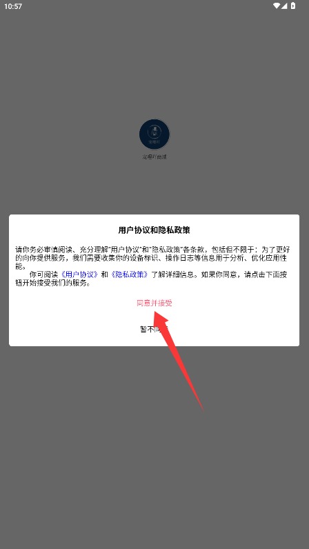 1、初次使用需阅读平台服务条款与隐私政策,确认后点击同意并接受按钮进入应用。