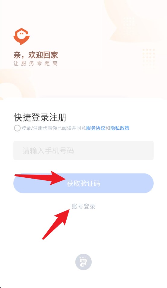 1、打开APP输入手机号后点击获取验证码,也可选择下方账号登录进入账号密码登录页。
