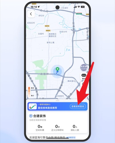 4、地图界面可查看接单地点,点击查看推荐路线即可导航到接单位置。