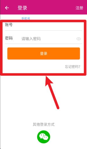1、打开APP之后,在登录页面输入账号密码后点击橙色按钮即可快速完成账号登录操作。