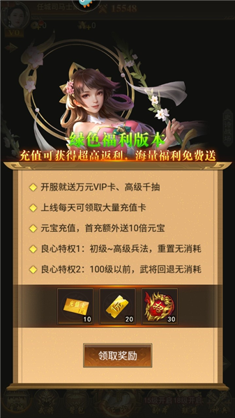 2、圣器玩法:轩辕剑(魏)、女娲石(蜀)等五大圣器对应阵营加成,进阶后为全体武将增加百分比属性,灵玉转化功能实现资源零浪费;