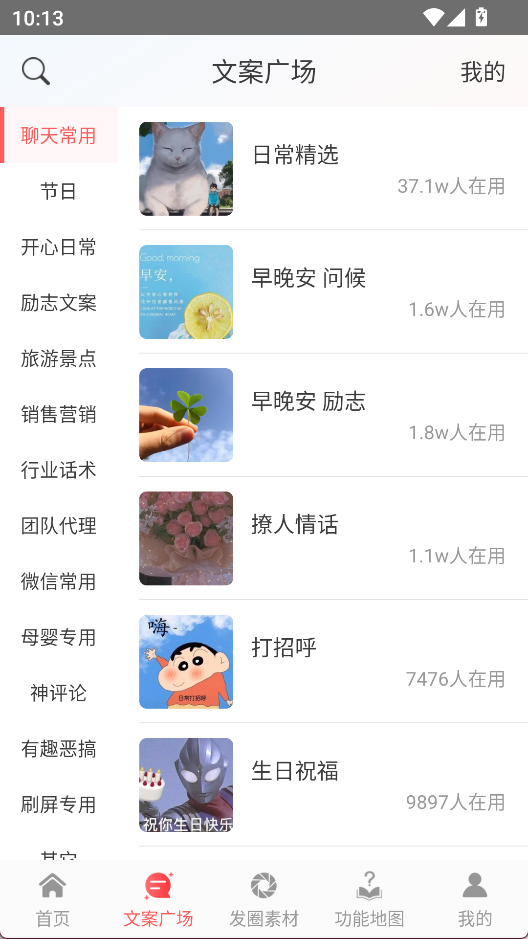 2、文案广场中有丰富的文案素材可以使用